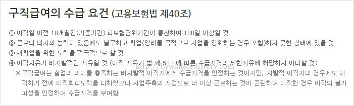 고용보험법 제40조에 의건한 고용보험 실업급여 수급자격 요건은 다음과 같죠.