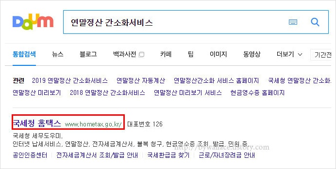 연말정산 간소화 서비스를 검색하면