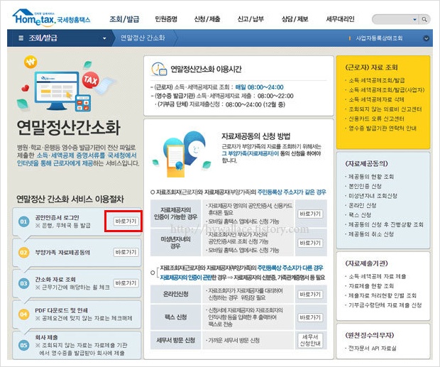 연말정산 간소화서비스 이용을 위해서는