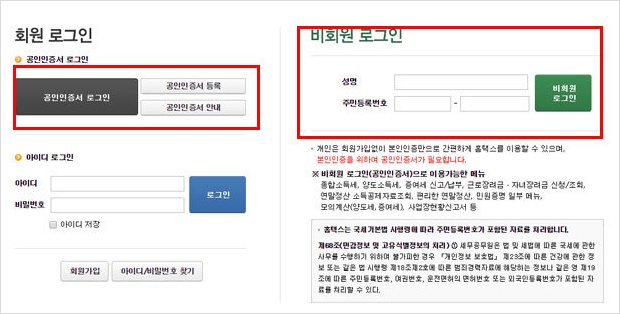 공인인증서로 로그인이 필요합니다.