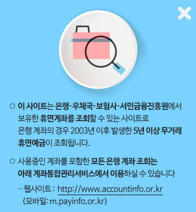 2003년 이후 발생한 5년 이상 무거래 휴면예금을 조회할 수 있죠.