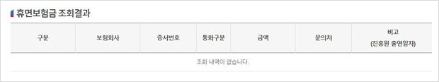 확인하고자 했던 휴면보험금 조회결과도 없네요.