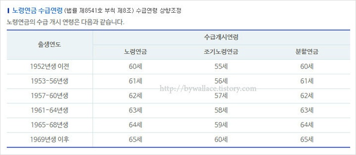 국민연금 수령액이 얼마인지 알아보기 전에 국민연금 수령나이를 알아볼께요. 국민연금은 1998년 연금개혁조치로 2013년부터 2033년까지 만 60세에서 5년마다 1세씩 늦춰져 만 65세로 상향 조정되었습니다.