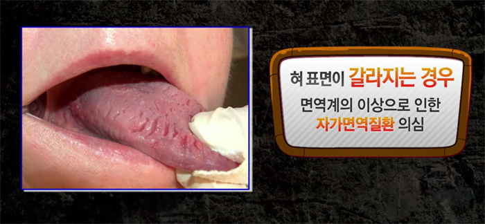 상처가 난 것처럼 혀가 갈라졌다면 면역체계에 문제가 생기고 스트레스를 많이 받고 있는 상황이라고 합니다.