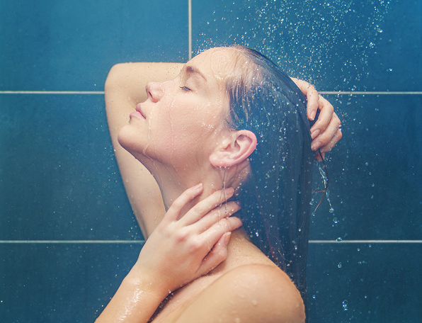 2. 잘 섞은 '베이킹소다 + 물'로 머리카락 전체를 충분히 적신 후 1~3분 정도 기다린 다음 미온수로 헹궈낸다.