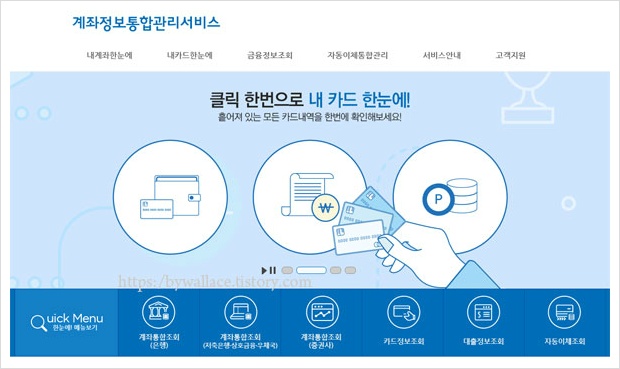 이상은 계좌통합관리서비스 중 내계좌 한눈에 홈페이지 이용방법에 대한 정보였습니다.