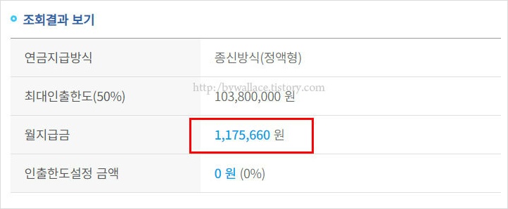참고로 계산결과에서 보여지는 금액과 실제 월지급금 및
