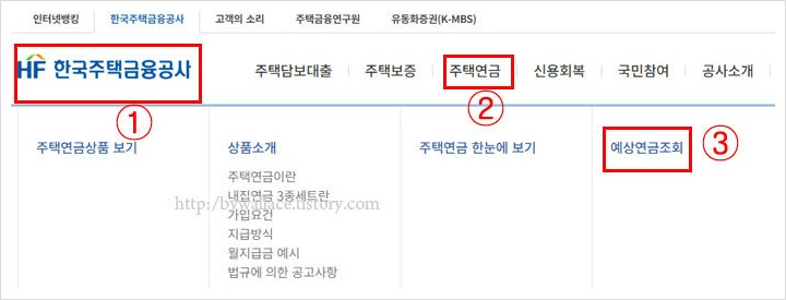 하단에 주택연금 예상연금 조회 바로가기가 나오는데요.
