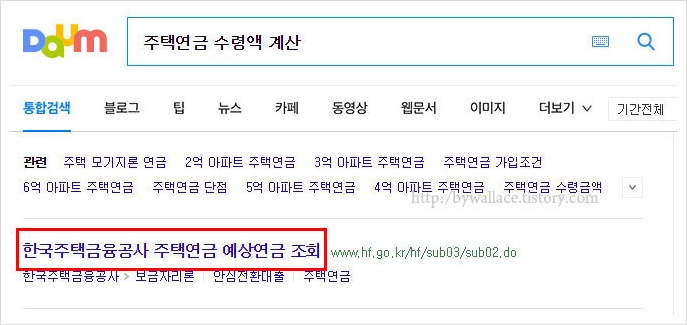 검색창에 주택연금만 입력하고