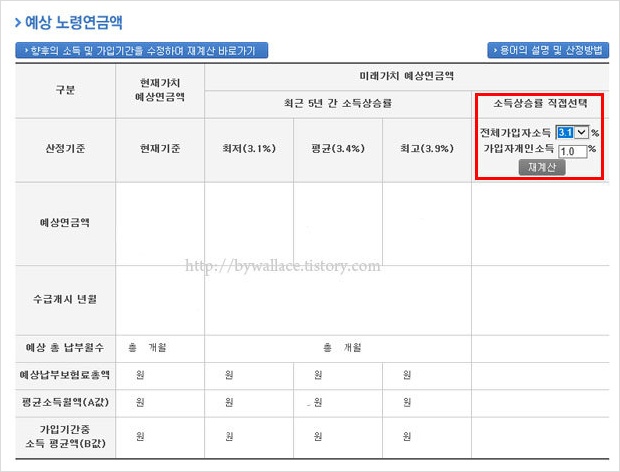 여기에는 예상연금 모의계산과