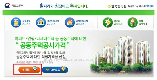 부동산공시가격알리미 사이트 상단이나