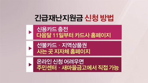 ▶ 11일부터 각 카드사 홈페이지에 접속해 온라인으로 신청할 수 있습니다. 단 세대주 본인 명의의 신용 및 체크카드로 신청해야 합니다. 또한 ▶ 18일부터는 카드사와 연계된 은행 창구에서 방문 신청도 가능합니다. ▶ 긴급재난지원금 포인트는 신청일로부터 2일 뒤 신용카드 및 체크카드에 충전됩니다. ▶ 다만 씨티카드 등 일부 카드는 현금성 포인트 관련 제도가 없습니다. 때문에 이번 긴급재난지원금 충전 대상에서 빠졌습니다. 참고하시기 바랍니다.