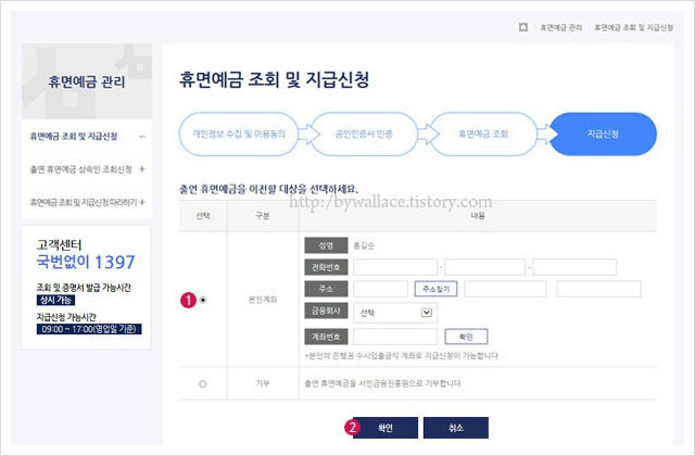 조회 및 지급신청을 해야 한다.