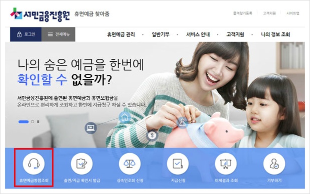 서민금융진흥원 휴면계좌 돈찾기 예금 조회 서비스 내용을 참고해