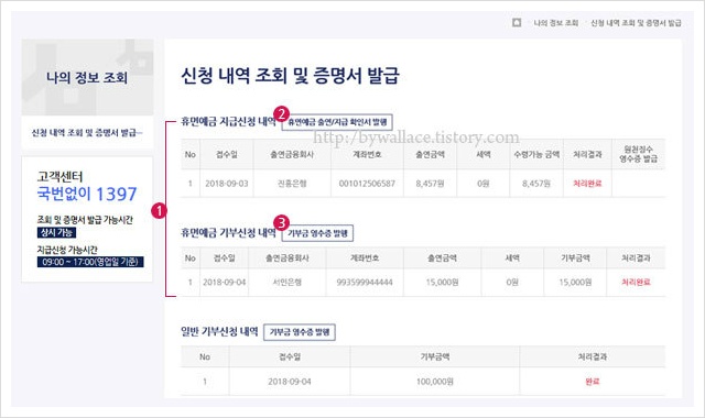 휴면예금 지급신청 내역 조회 및 증명서 발급이 가능하다.