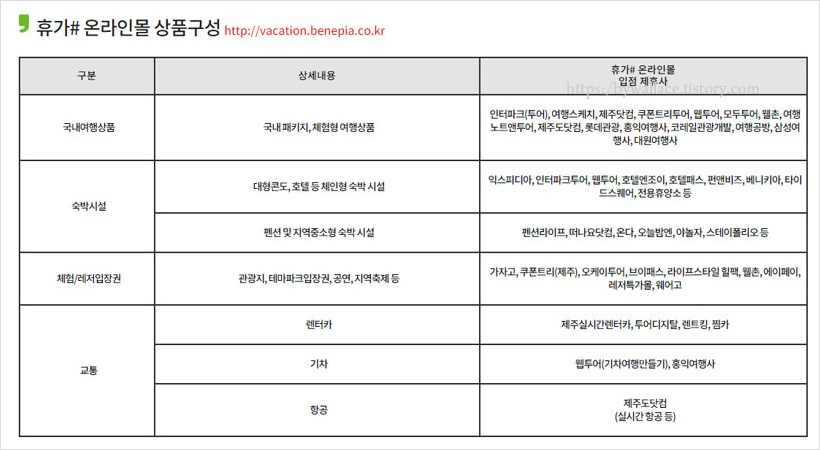 ▶ 휴가# 온라인몰(vacation.benepia.co.kr)은 참여근로자에 한해서 폐쇄몰로 운영된다고 해요.