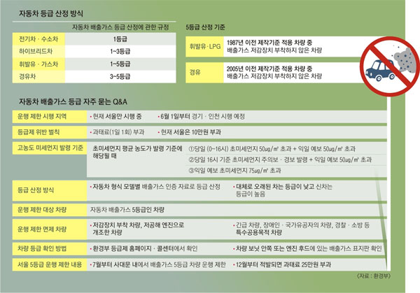 미세먼지 농도 예방대책 일환으로 5등급 차량 운행제한과