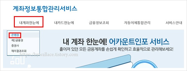 계좌정보통합관리서비스 내 계좌 한눈에 홈페이지 서비스 찾기 방법