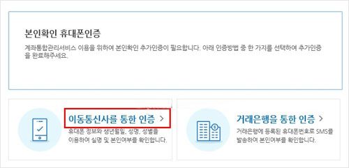 이통사를 통한 인증과 거래인증을 통한 인증 중