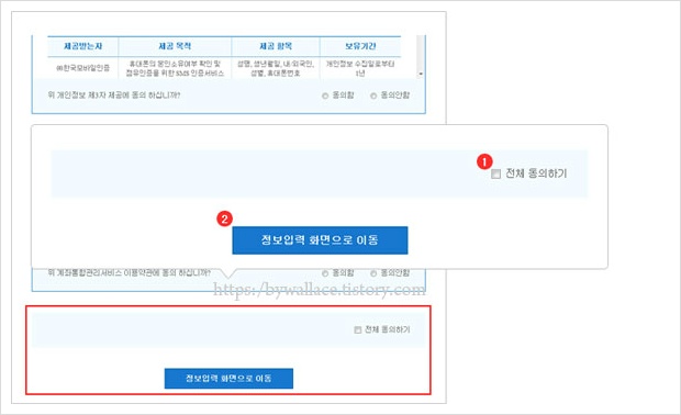 먼저 개인정보 동의 항목에 동의를 해야만 진행이 가능한데요.