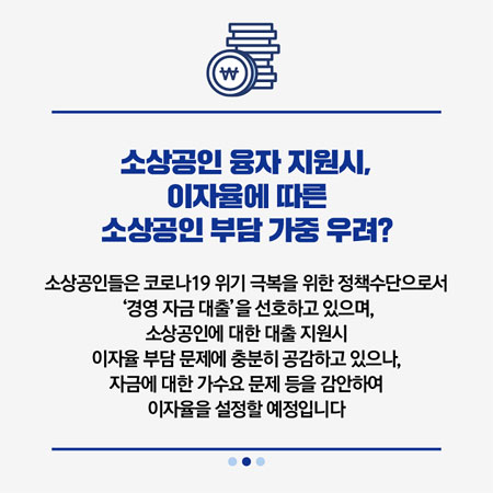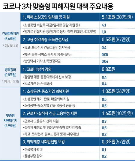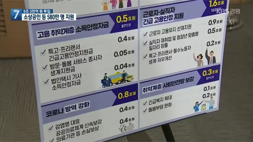 영업제한 30만 개 업체에는 신용보증을 통해 2∼4%대 금리로 3조 원을 공급할 예정이라고 해요. 0.9%인 보증수수료를 첫해에는 면제하고 2∼5년 차에는 0.6%로 인하 혜택이 추진되고 있죠.
