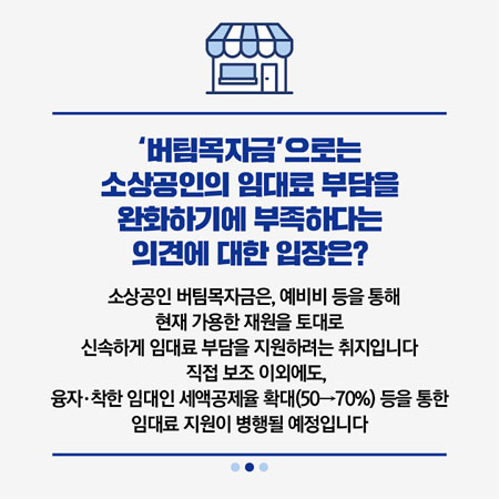 점포가 자가 소유인 소상공인도 똑같이 지원금을 받을 수 있는데요. 이 번 지원금에는 임대료 지원 명목도 있지만 여타 고정비용을 줄여준다는 명목도 있기 때문이라고 해요. 무엇보다 자가 소유 여부를 확인에 대한 복잡함 때문에 자가점포에도 지원금을 지급하기로 했다고 하네요.