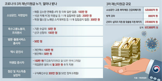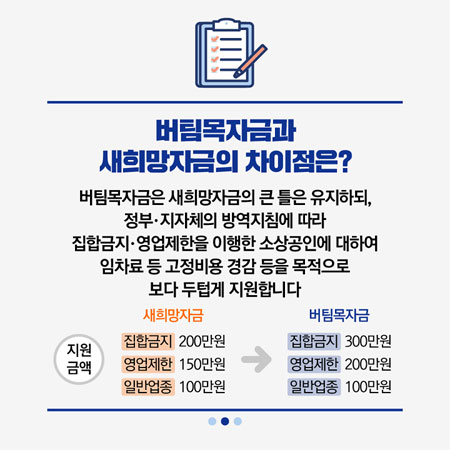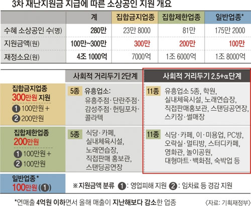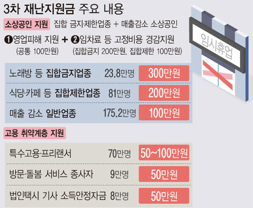 앞서 2차 새희망자금을 받은 소상공인 분들 같은 경우 별도 심사 없이 신청만으로 11일부터 지원금을 지급받을 수 있는데요. 코로나 소상공인 3차 지원금 대상 업종 및 지원금액은 다음과 같다고 해요.
