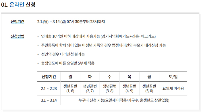 경기도 재난지원금 온라인 신청은 다음 달 3월 14일까지 진행됩니다. 또한 다음 달인 3월 1일부터는 오프라인을 통한 현장 접수도 받습니다. 아울러 4월부터는 도내 거주 외국인에 대한 지급 신청도 진행합니다. 경기도민이라면 1인당 10만 원씩을 지원받는 경기도 재난지원금 신청 일정을 간략하게 정리하면 아래와 같습니다.