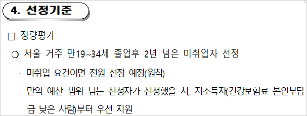 서울시 청년수당 대상은 고용보험에 가입하지 않은 미취업자가 대상이지만 고용보험에 가입했어도 주 26시간 이하 또는 3개월 이하 아르바이트, 단시간 및 시간제 근로자 등 단기취업자는 신청할 수 있는데요. 신청자가 많을 경우 건강보험료 납부액이 낮은 순으로 우선 선정한다고 해요.
