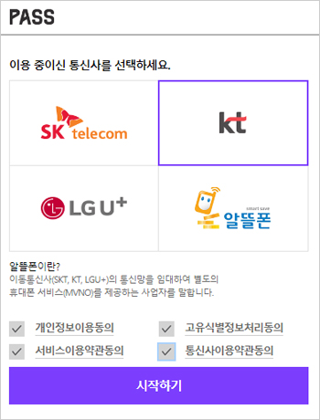 이용 중인 통신사를 통한 인증이 완료되면 신청 카드사를 선택한 후 다음 단계를 클릭해 주시구요.