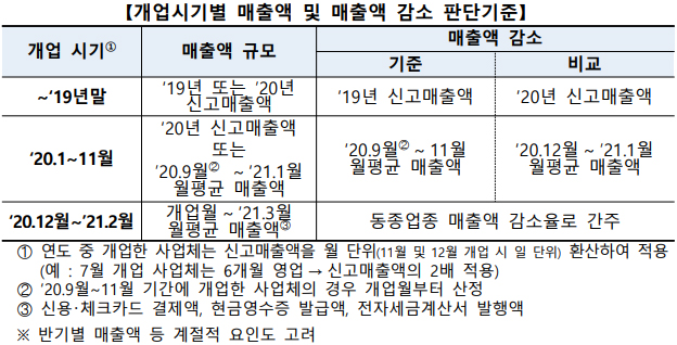 지난해 매출이 20% 미만으로 줄어든 일반업종은 100만원의 지원금을 받습니다. 이 유형은 소기업 기준 대신 연 매출 10억원 이하 사업자로 국한됩니다.