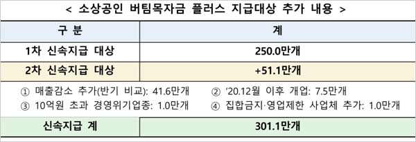 1.소상공인 버팀목자금 플러스2차 신속지급 대상 - 사각지대 해소 등 지급대상 추가