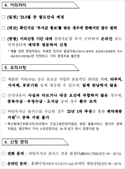 1. 버팀목자금 플러스 신속 지금 대상에 포함됐으나 본인인증 불가 및 계좌 압류 등의 이유로 지원금을 받지 못 한 경우,