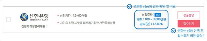 상품접수를 하게 되면 금융회사에서 서류 및 심사 안내 전화가 오기 때문에 금융회사 발신번호를 확인해 전화를 받아야 하구요. 해당 금융회사의 안내에 따라 진행해 주시면 되는데요. 다만 지점 방문 상품의 경우 안내전화가 오지 않기 때문에 가까운 지점을 방문해야 한다고 해요.