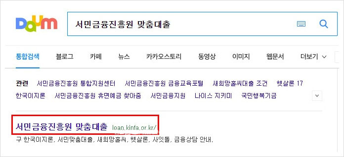 먼저 다음이나 네이버, 구글 등에서 서민금융진흥원 맞춤대출을 검색하면 홈페이지 사이트가 바로 나온답니다.