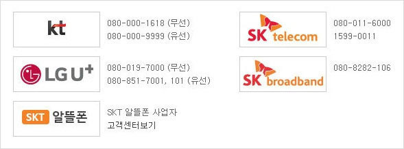참고로 조회 가능한 통신사는 아래와 같은데요. KT, SK 텔레콤, LG유플러스, SK브로드밴드의 유·무선 서비스에 대한 미환급액 조회가 가능하구요. 통신사에서 직접 조회를 원하시는 분은 아래에서 통신사 버튼을 클릭하시거나 해당 번호로 문의하시면 된다고 합니다.