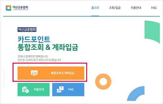 여신금융협회 카드포인트 통합조회 계좌입금 방법!