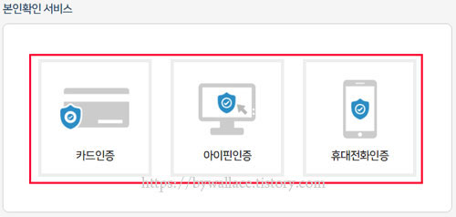 본인확인 서비스를 위한 인증절차가 진행되는데요. 카드인증과 아이핀 인증, 휴대전화 인증을 통해 이용이 가능하다고 해요. 본인인증이 완료되면 자동으로 다음페이지로 이동하는데요. 휴대전화 인증을 통해 여신금융협회 카드포인트 통합조회 계좌입금을 진행해 보도록 할게요.