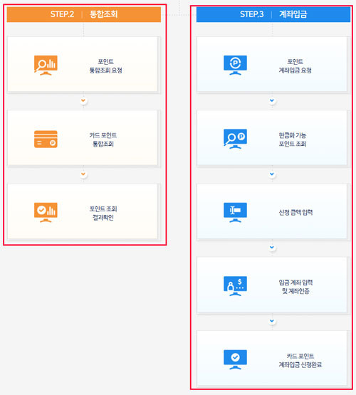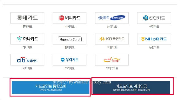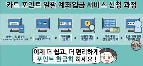 카드포인트 통합조회서비스 이용은 신용카드 및 체크카드 개인회원이 대상이 됩니다. 카드 포인트의 현금화 비율은 1포인트당 1원입니다.