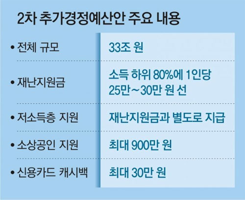 그 대신 고소득자를 대상으로 신용카드 캐시백(1인당 30만원 한도) 등을 활용해 소비 여력을 늘려줄 계획이라고 합니다. 이는 전국민 재난지원금을 주장한 민주당과 하위 70% 지급을 주장한 정부의 절충안이라고 합니다.