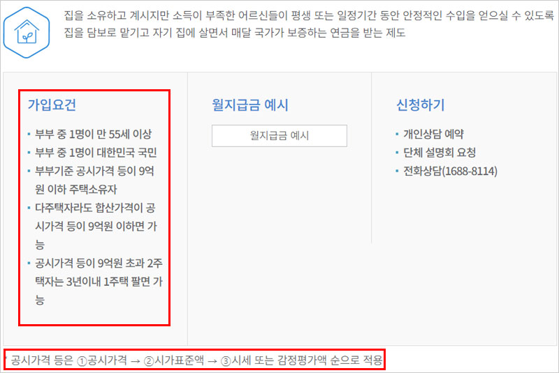 ◈ 주택연금 가입조건 세부내용