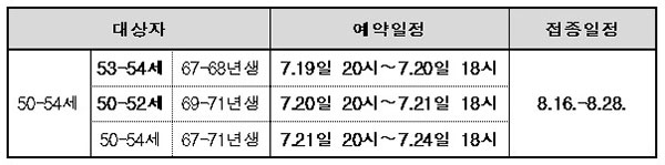 먼저 지난 19일 오후 8시(10시)부터 코로나19 예방접종 사전예약 시스템을 통해 만 53∼54세에 해당하는 분들의 코로나 백신접종예약을 받고 있다고 합니다.