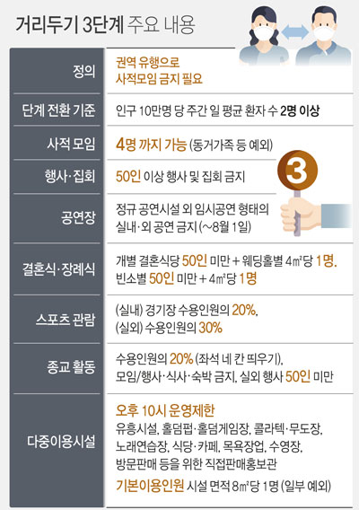 비수도권 사회적 거리두기 3단계 기준 및 사회적 거리두기 3단계 지침 내용