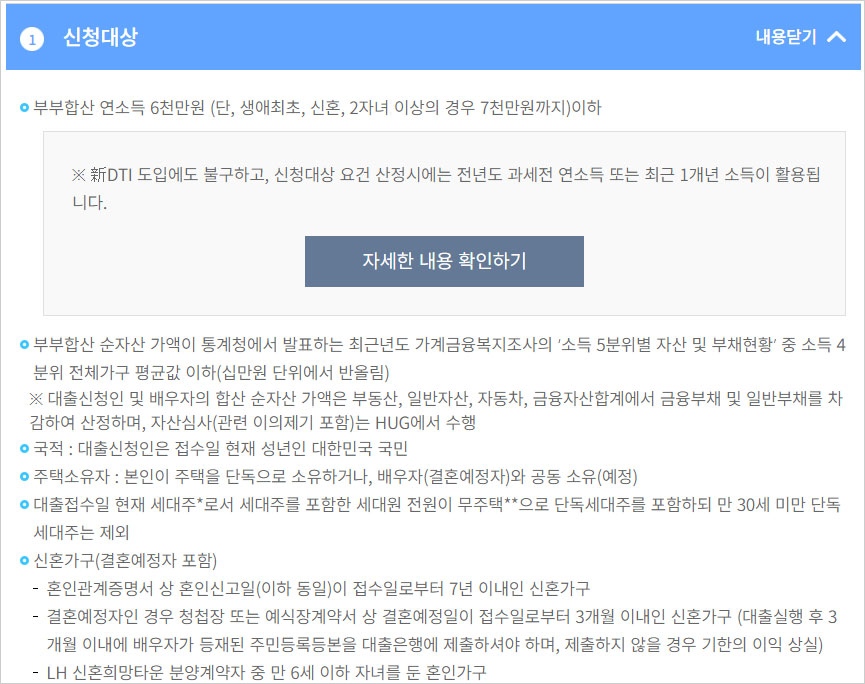 ▶ 부부합산 연소득 6천만원 (단, 생애최초, 신혼, 2자녀 이상의 경우 7천만원까지)이하의 무주택 세대주.