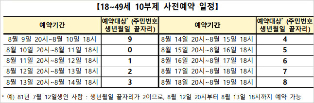 8월 19일~8월 21일 : 18세~49세 연령대별 추가예약