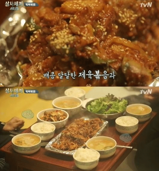 생각만 해도 침이 고이는 제육볶음인데요. 매콤하고 달달한 제육볶음.. 아마 싫어하시는 분은 거의 없으실 것 같아요~ 예전에 방송된 tvn 삼시세끼에서는 나영석 PD와의 실랑이를 불사하고 손호준을 위해 특별히 만들어 준 제육볶음이 인상적이였는데요.