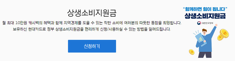 상생소비지원금 현대카드 캐시백 신청 방법 및 신청 대상