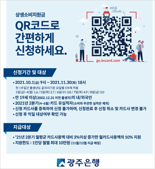 1. BC비씨카드 제휴은행 광주은행 상생소비지원금 신청대상자