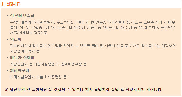 공통구비서류와 의료비 및 배우자 장제비, 전 월세자금 등 용도별 구비서류를 준비해야 합니다.