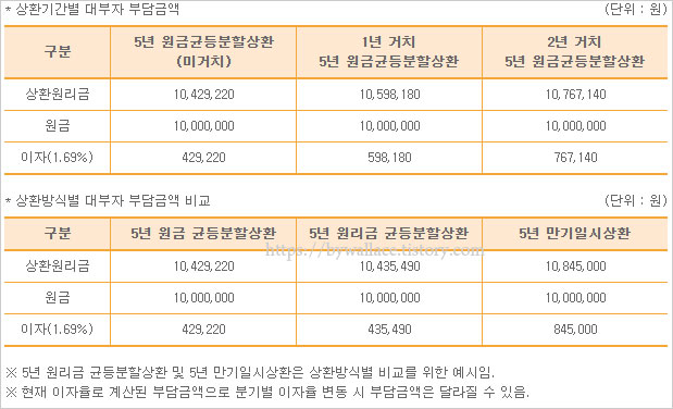 * 상환기간별 대부자 부담금액 및 상환방식별 대부자 부담금액은 다음과 같습니다.